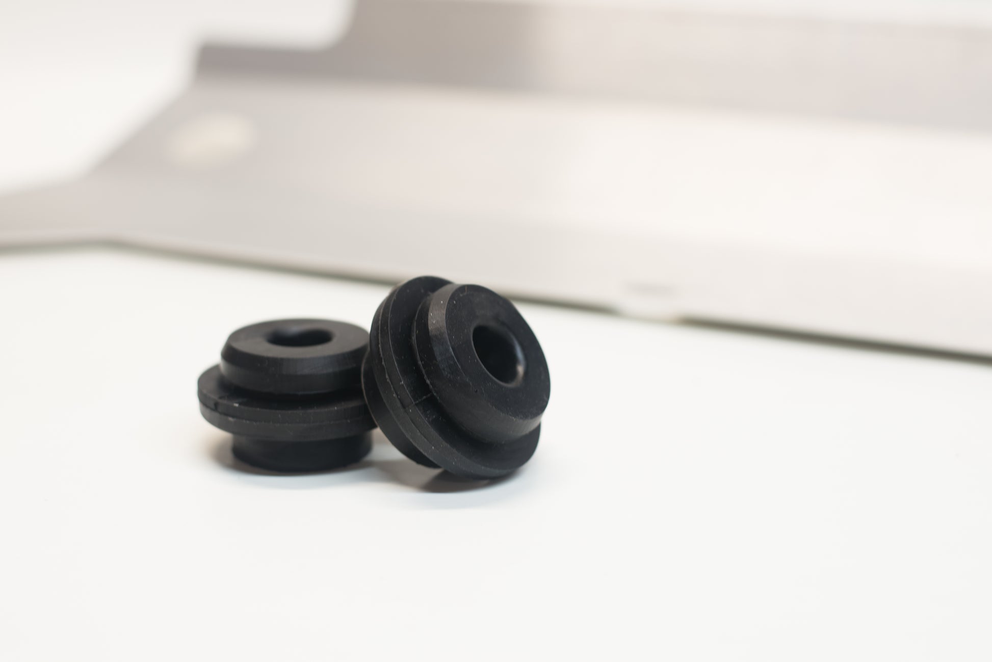 - Custom mounts/bushings molded in high-quality polyurethane. Upper mounts are insert-molded with an aluminum stiffener.